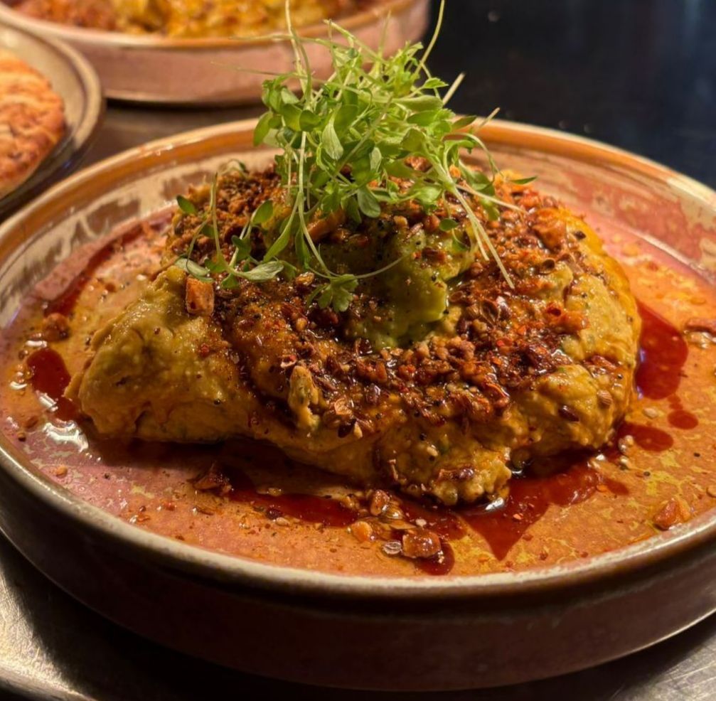 Smoked almond dukkah + pomegranate molasses + warm pitta bread